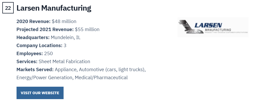 We are very happy to inform you that Larsen Manufacturing is included in top positions of the prestigious ‘The Fabricator’s Fab 40 list.